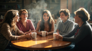 Wir treffen uns regelmäßig in lockerer Atmosphäre in einem Café für den Austausch mit Kolleginnen.